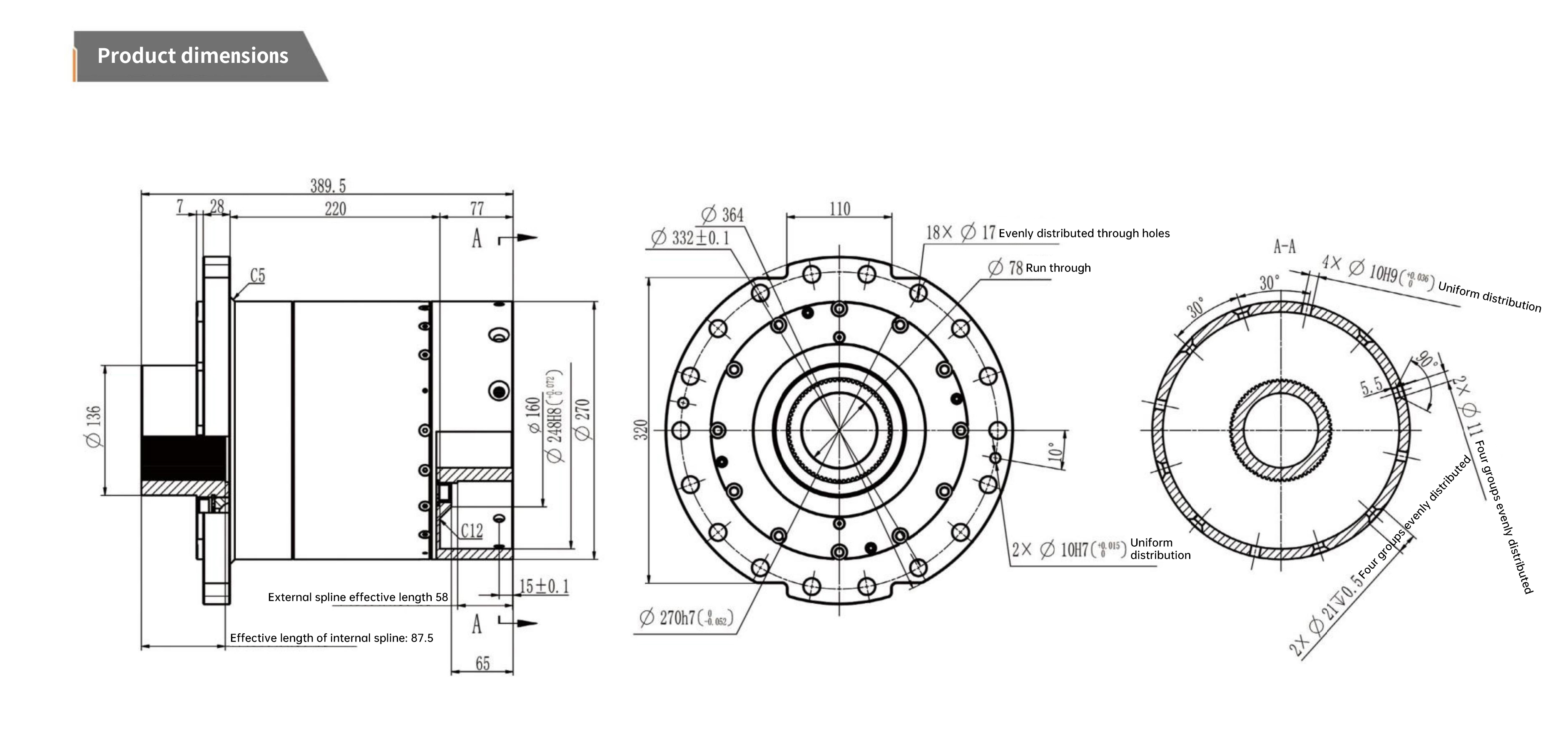 Serial number | Product model code | Rated output torque/Nm | Gear ratio | Backlash accuracy/ arcmin | Start-stop torque/Nm | Transmission efficiency/ % | Dimensions(mm) |